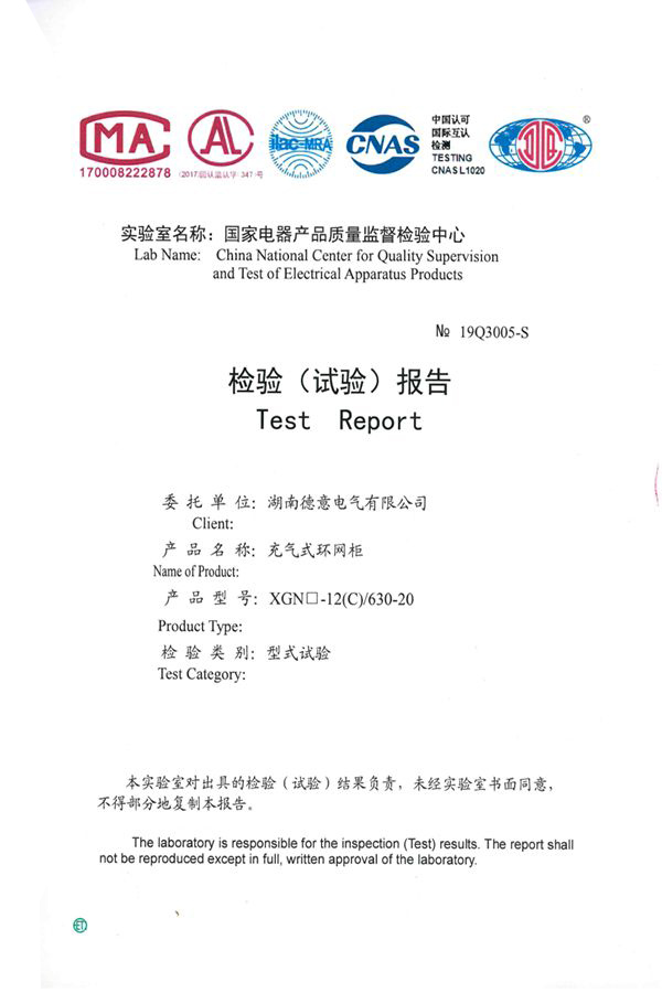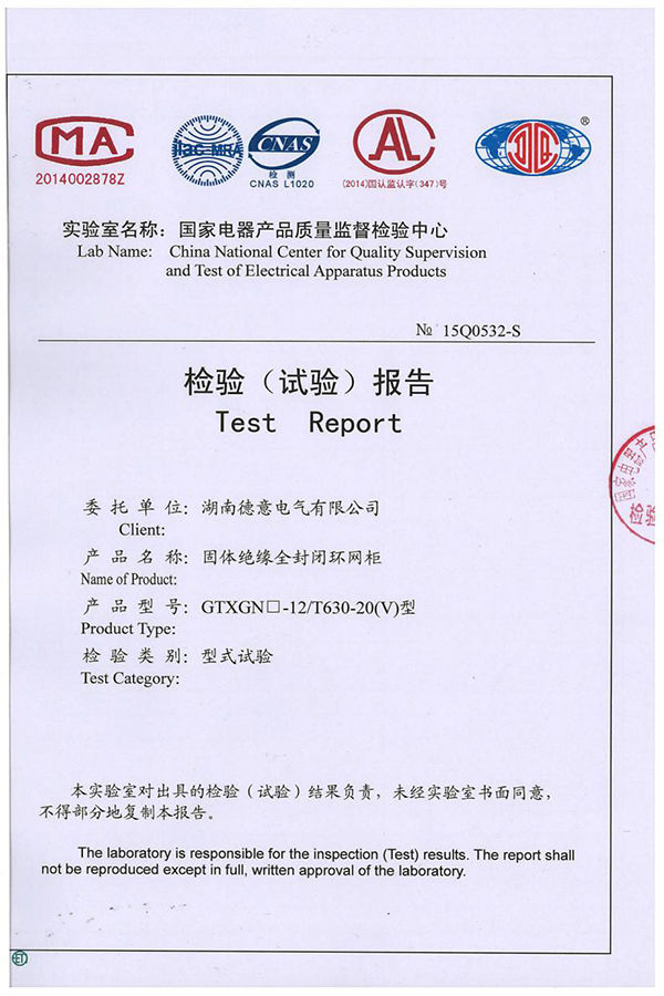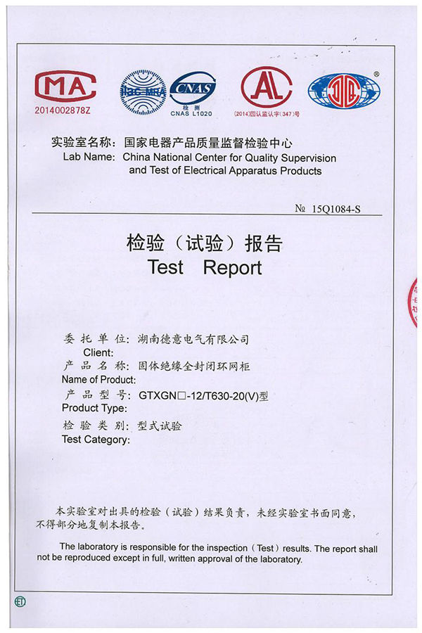 GTXGN□-12/T630-20(V)固體絕緣全封閉環(huán)網(wǎng)柜試驗(yàn)報(bào)告