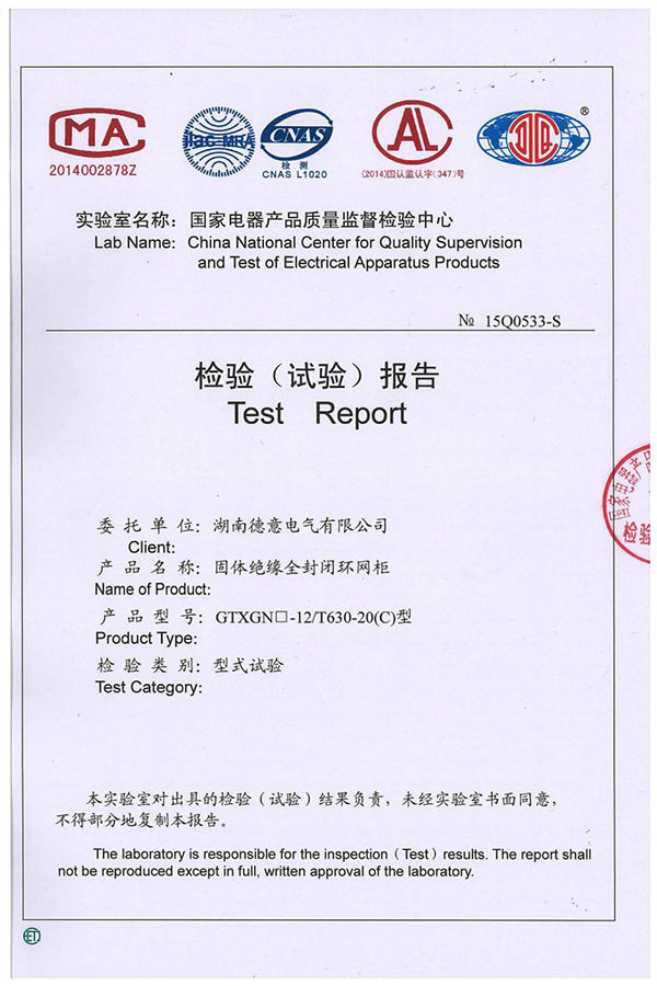 GTXGN□-12/T630-20(C)固體絕緣全封閉環(huán)網(wǎng)柜試驗(yàn)報(bào)告