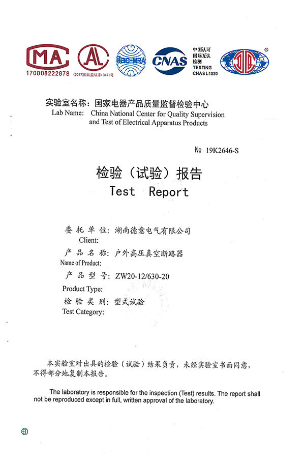 ZW20-12/630-20戶外高壓真空斷路器試驗(yàn)報(bào)告