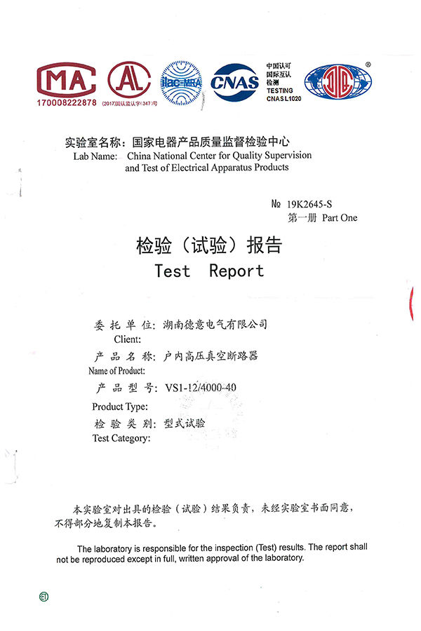 VS1-12/4000-40戶內(nèi)高壓真空斷路器試驗(yàn)報(bào)告