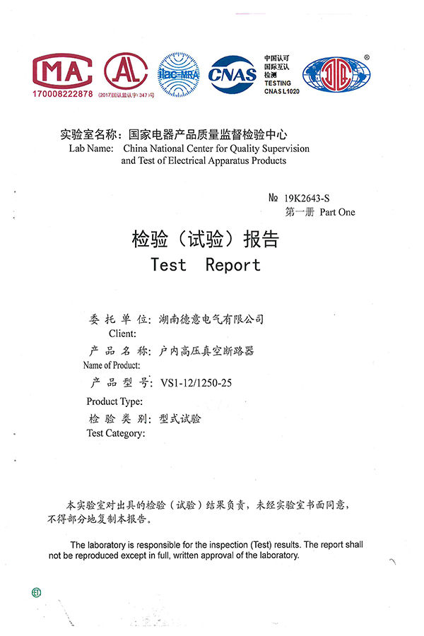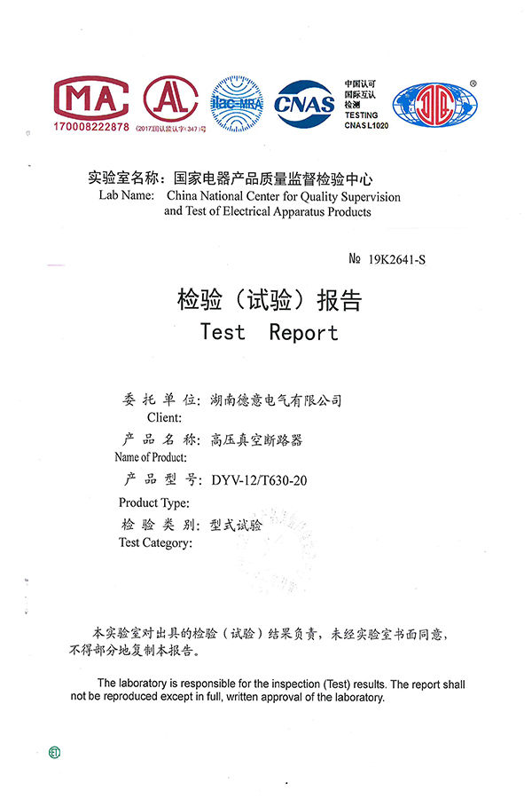 DYV-12/T630-20 10kV高壓真空斷路器試驗(yàn)報(bào)告