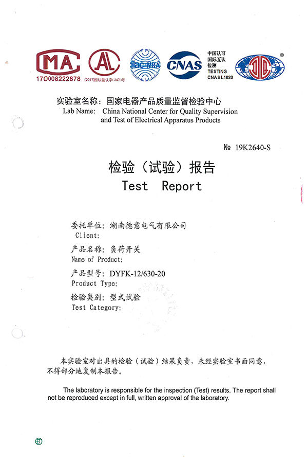 DYFK-12/630-20負(fù)荷開關(guān)試驗(yàn)報(bào)告