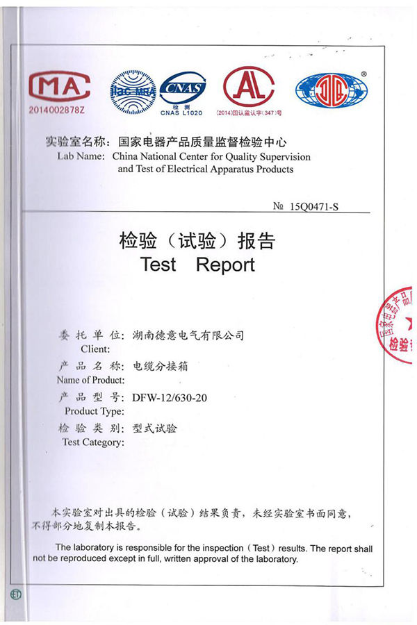 DFW-12/630-20電纜分接箱試驗(yàn)報(bào)告