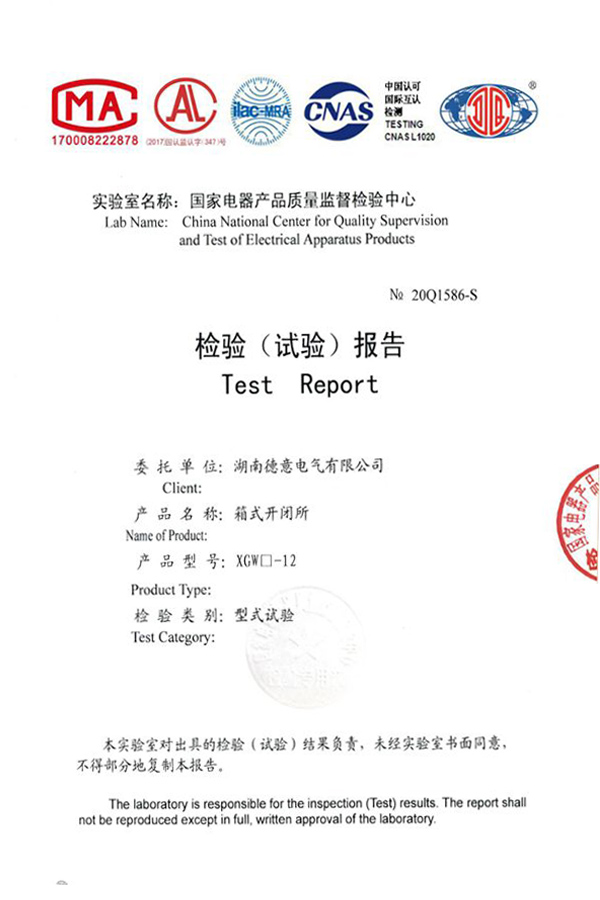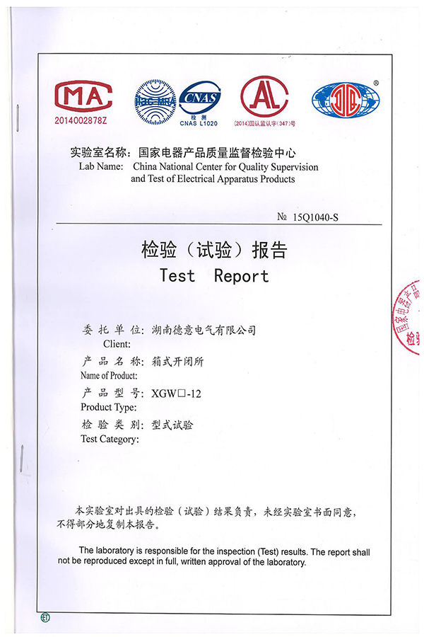XGW□-12箱式開閉所試驗(yàn)報(bào)告