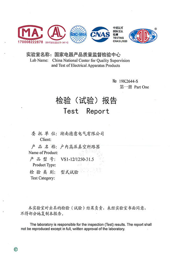 VS1-12/1250-31.5戶內(nèi)高壓真空斷路器試驗(yàn)報(bào)告