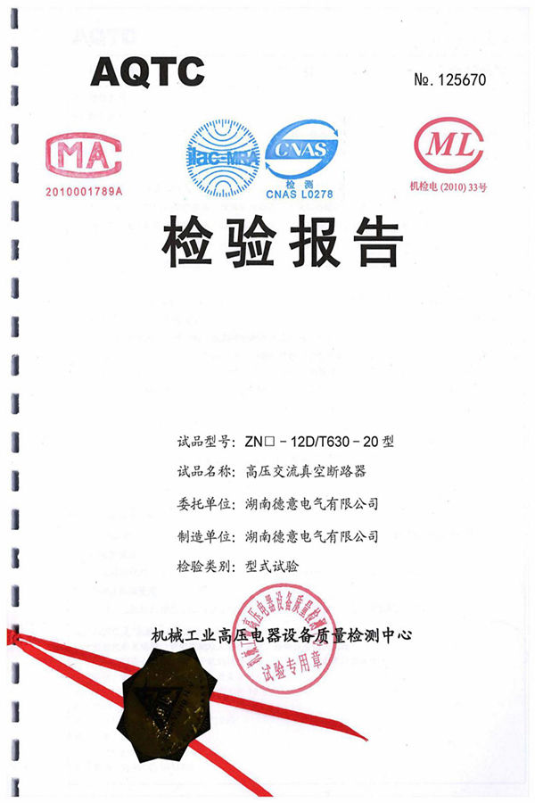 ZN□-12D/T630-20型高壓交流真空斷路器試驗報告