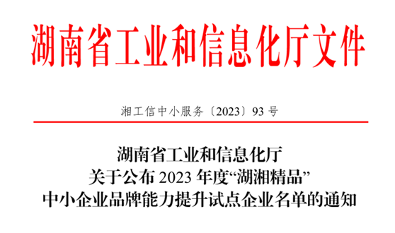 喜報 | 公司喜獲湖南省2023年度“湖湘精品”稱號