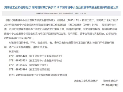 公司項目獲2019年湖南省中小企業(yè)發(fā)展專項資金支持
