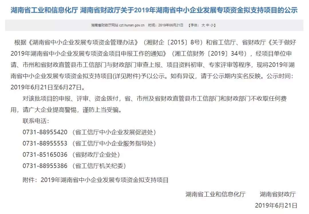 公司項目獲2019年湖南省中小企業(yè)發(fā)展專項資金支持